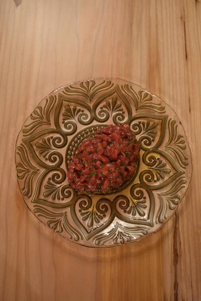 Steak tartare prepared with Thomas George Estates Russian River Valley olive oil.