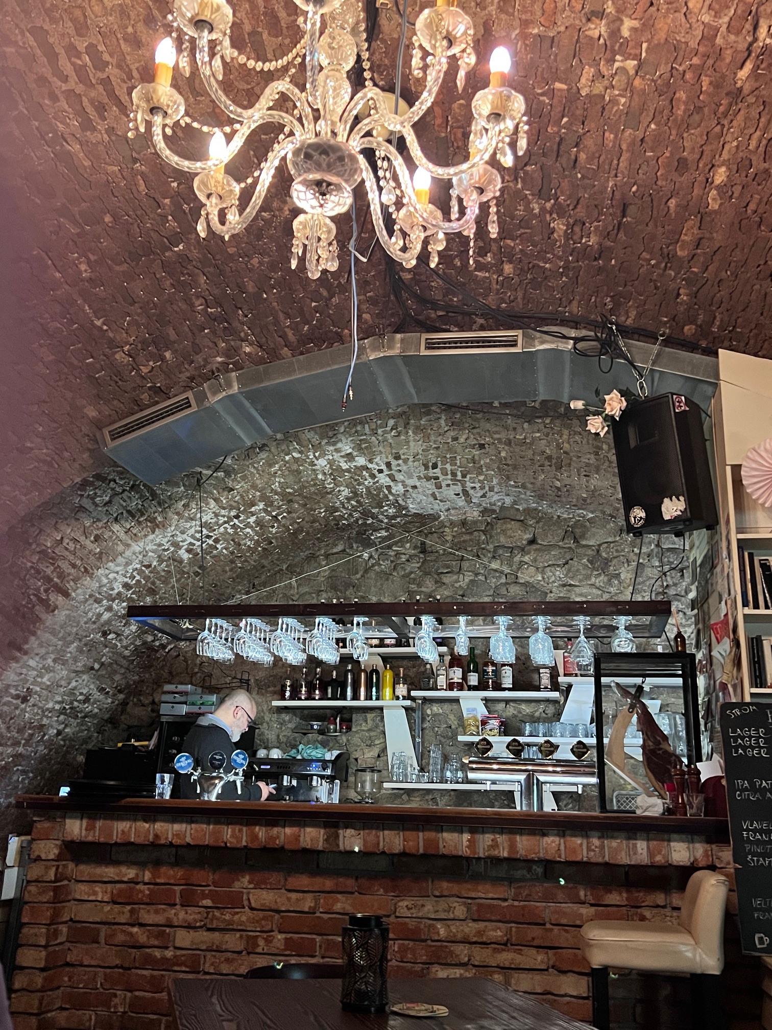 We were walking in Bratislava’s old town looking for an authentic Slovakian restaurant when we spotted intriguing signs promising true Bratislavan farm-to-table cooking in a 13th century cellar, and Slovakian wines, spirits and beers, with ‘no Heineken bullshit’. I laughed out loud.