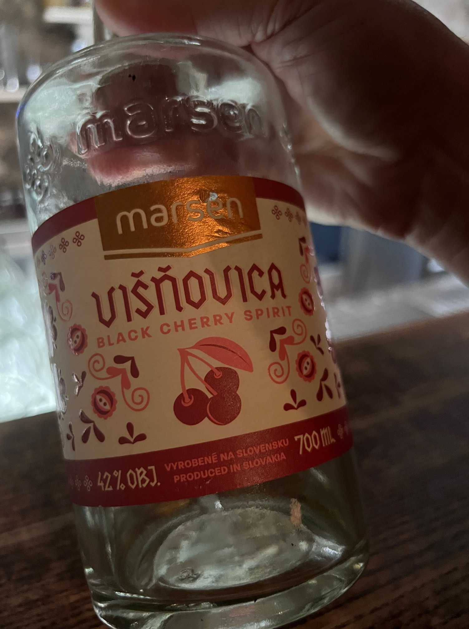 Dessert for me was a delicious Slovakian digestif – Višňovica, a cherry spirit, hot at 42%