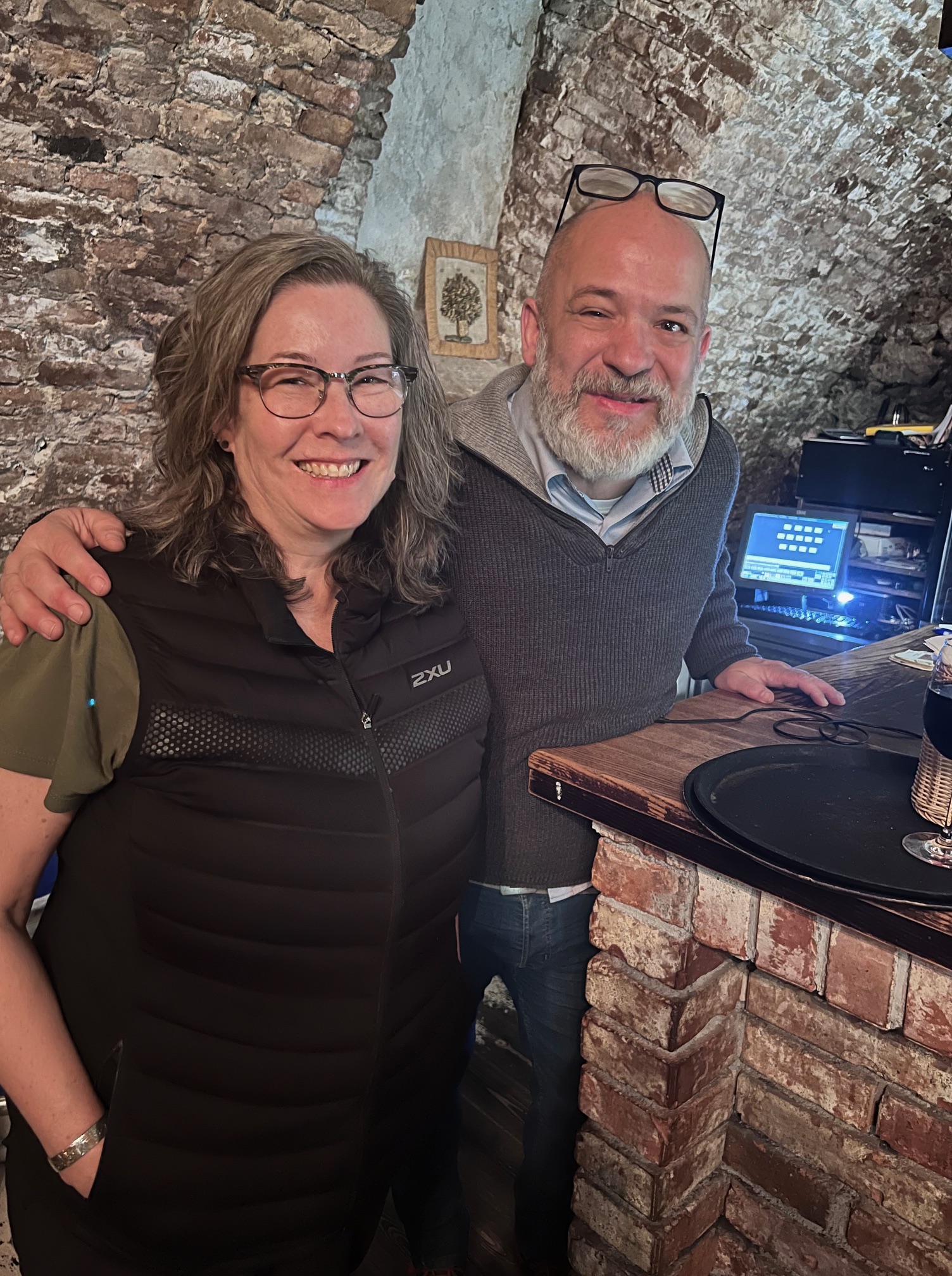 Marek greeted us literally with open arms and invited us to dine in the courtyard or downstairs in the cellar, renovated in 2010. It was cold – we chose the cozy downstairs cellar.